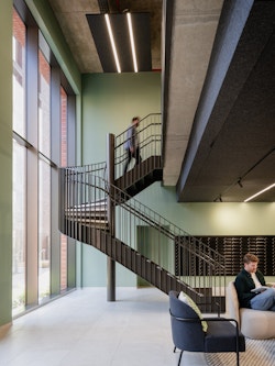 A suite of co-living amenities supports modern, flexible lifestyles, including co-working spaces, quiet zones and meeting rooms, as well as leisure and social spaces. Interior design choices draw from the site’s legacy with a contemporary palette softened by natural materials and tactile detailing that nod to its former life as a public bathhouse.