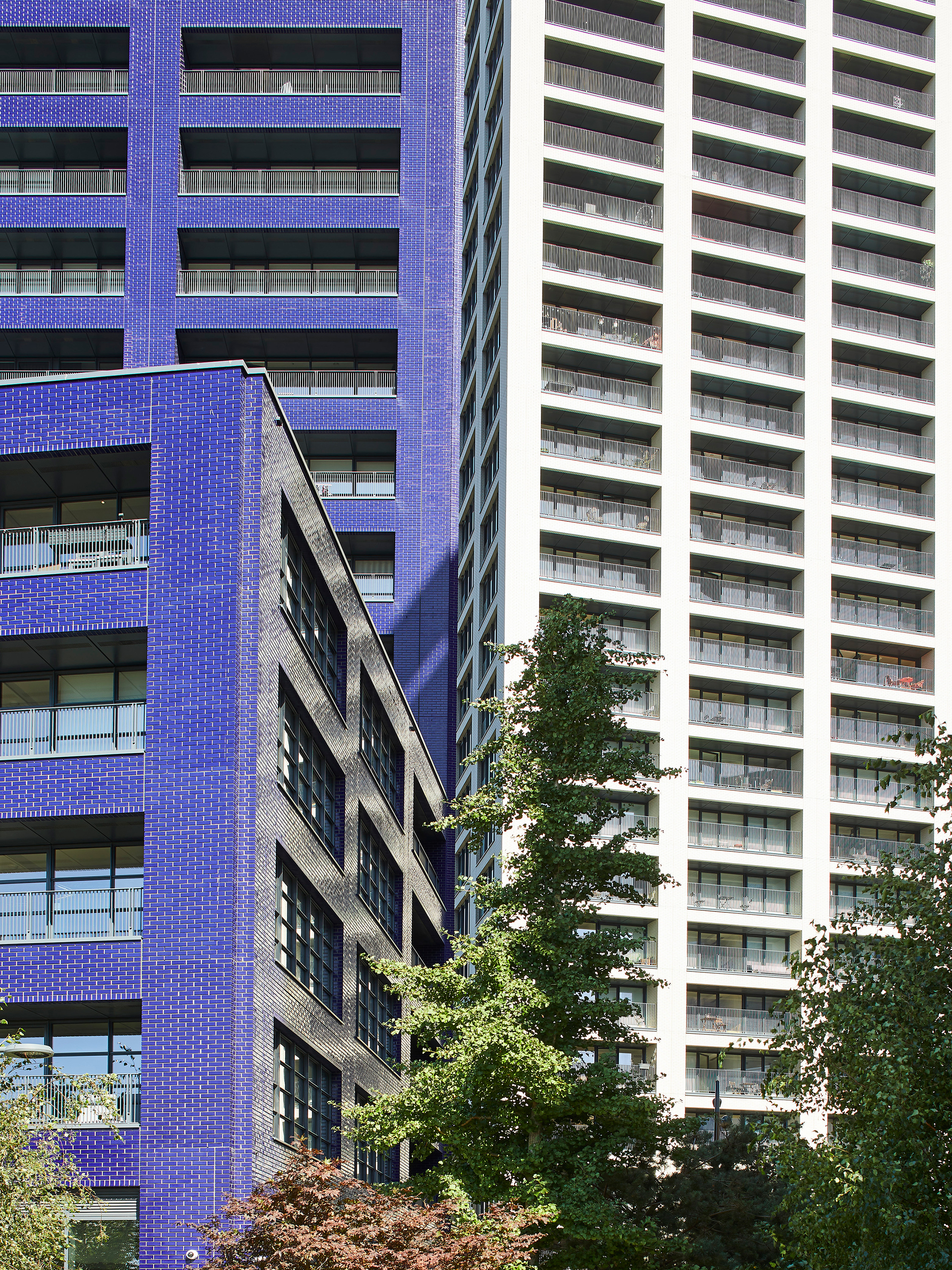 To maximise affordability without compromising build quality, the Island’s 1,706 new homes employed prefabricated brick and concrete panels developed in a unique collaboration with Dutch firm Byldis. Each of the strikingly coloured buildings was efficiently and cleanly assembled on site from carefully modelled and highly crafted factory-made facade units—some weighing up to 28-tonnes. The precision-made precast elements enabled unprecedented on-site speed to exacting quality standards, with each floor being completed in just seven days—halving the timescale of traditional construction.