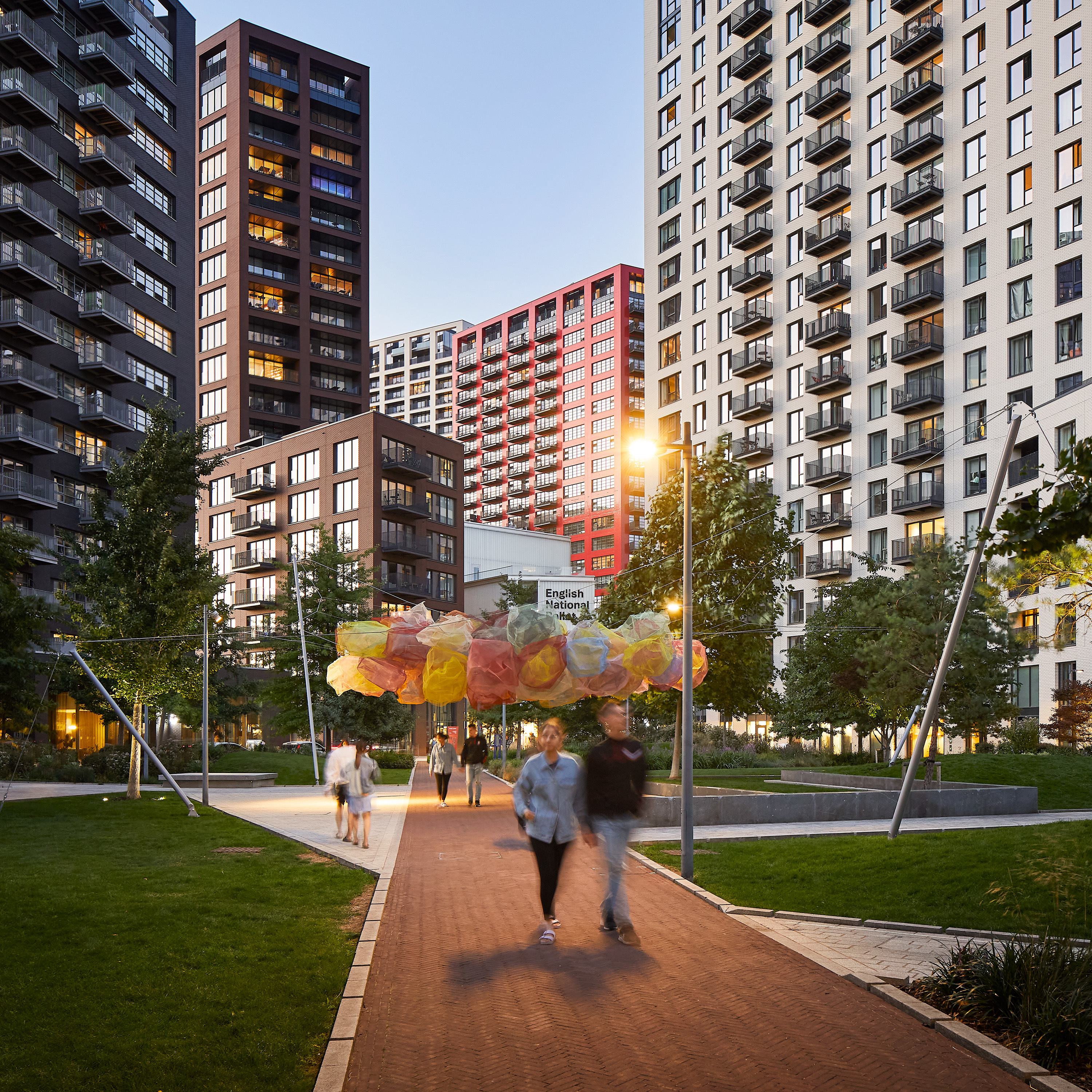 The Island’s curated cultural programme includes the annual Unity Arts Festival, conceived to create a focal point for surrounding creative communities, and Catching Colour, a site-specific artwork from Rana Begum that now forms part of East London’s The Line art trail.