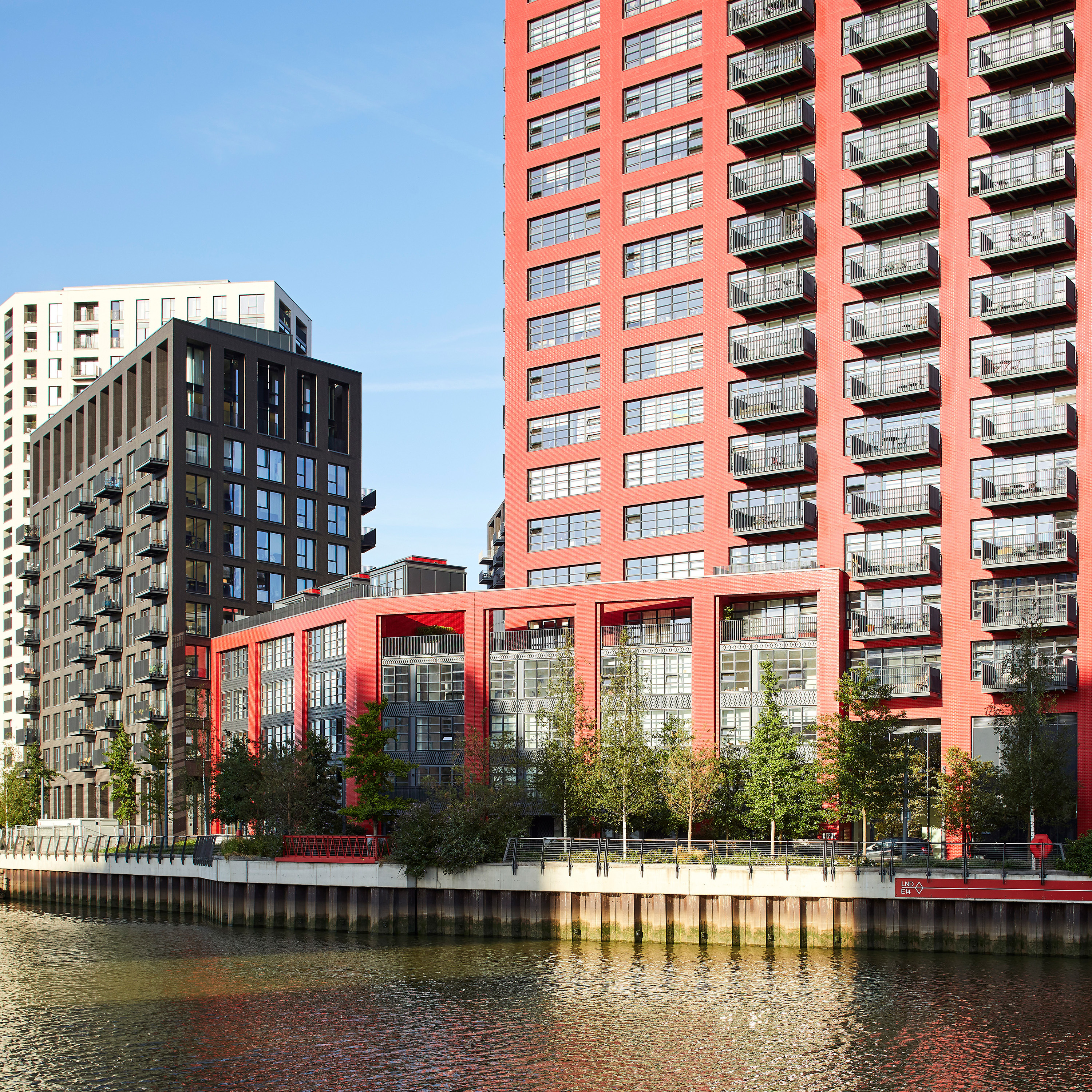 The ambition for London City Island was to create a new destination—a place full of culture and life with a character of its very own. Our design inspiration was sparked by the social and economic history of the site, which for 200 years had been a place of making and small-scale industry surrounded by bustling wharf activity. Our language of robust forms with the regular stamp of deeply punched window openings references the typologies of the hardworking buildings that once lined London’s river.