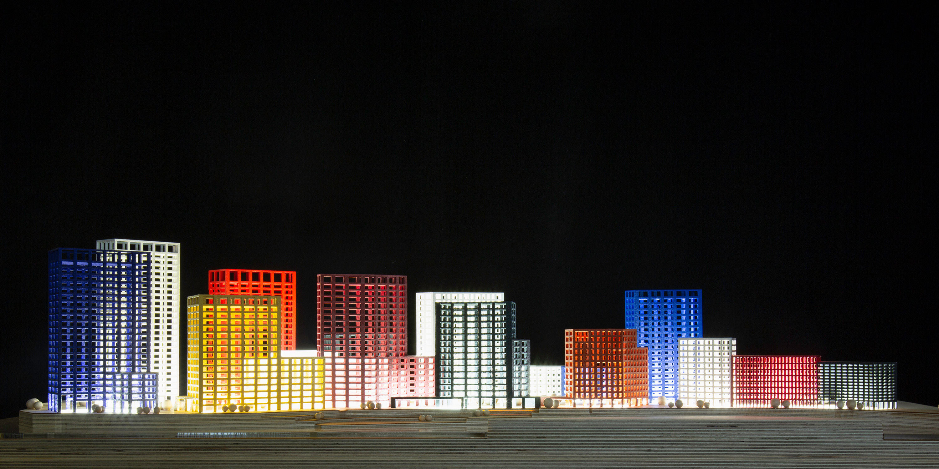 London City Island is located on a dramatically meandering curve of the River Lea in east London, just before it joins the Thames. Our collage of bold and brightly coloured forms includes 10 residential buildings, a new home for the English National Ballet, offices, retail space and leisure facilities. Amplified by hues of different brick, the Island’s collected silhouettes shift and regroup when viewed from different angles along the river.