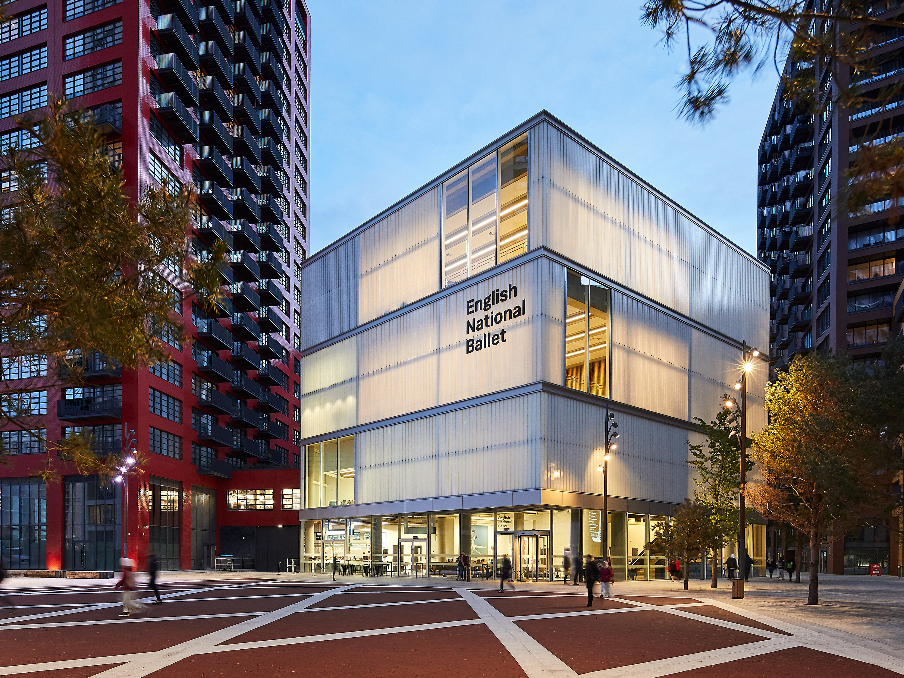 Creativity and making has now been firmly reinstated at London City Island, with occupiers including multiple small arts organisations, galleries and music studios alongside the cultural anchor of English National Ballet—housed in a glowing, translucent and jewel-like building at the centre of the site and protected by the fortifying ring of harder-edged brick buildings.