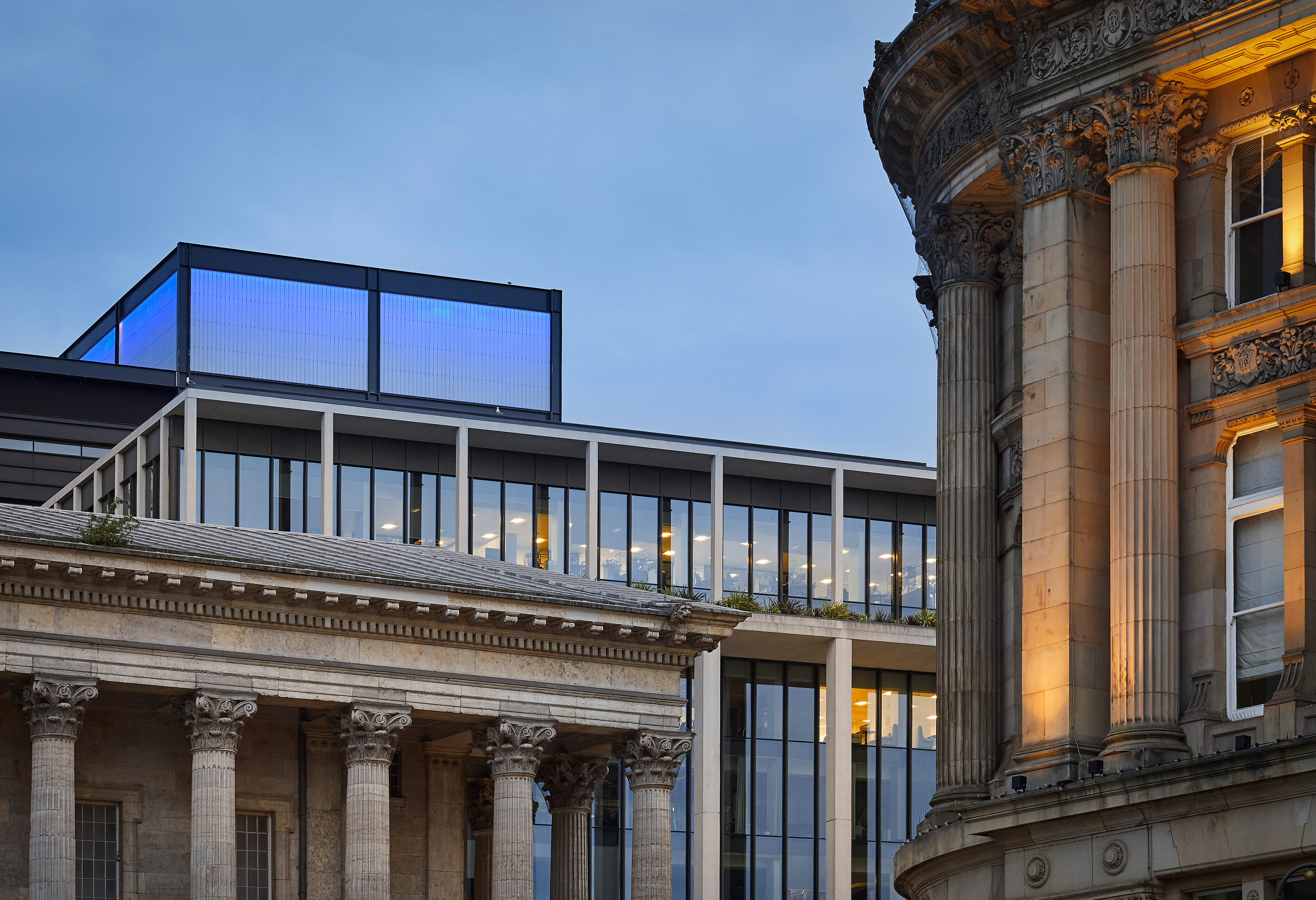 An 8-metre-high lantern on top of the building, constructed within the façade’s structural grid, features a changeable 360-degree light display visible from miles around, adding a colourful crown to Birmingham’s city skyline.