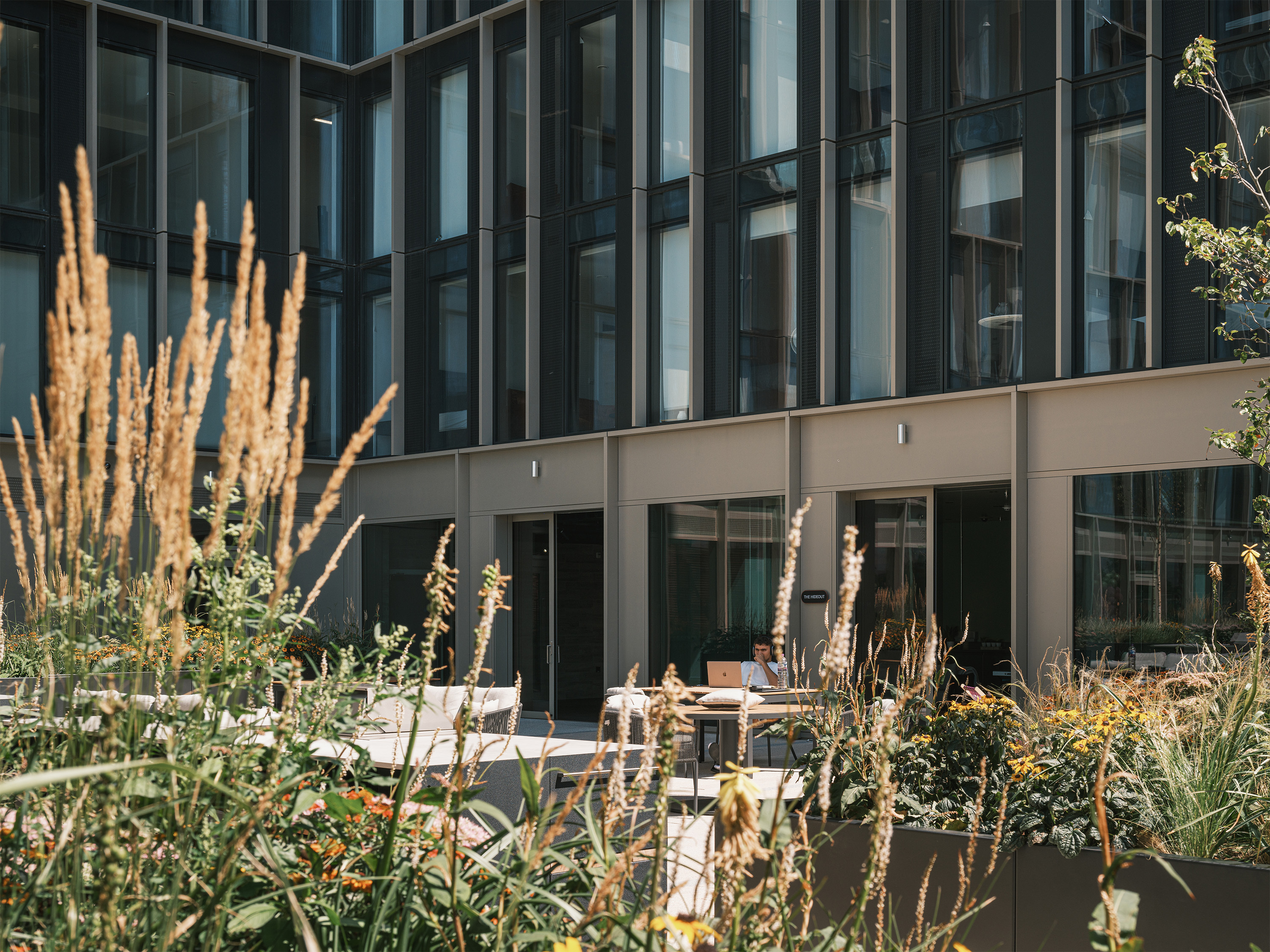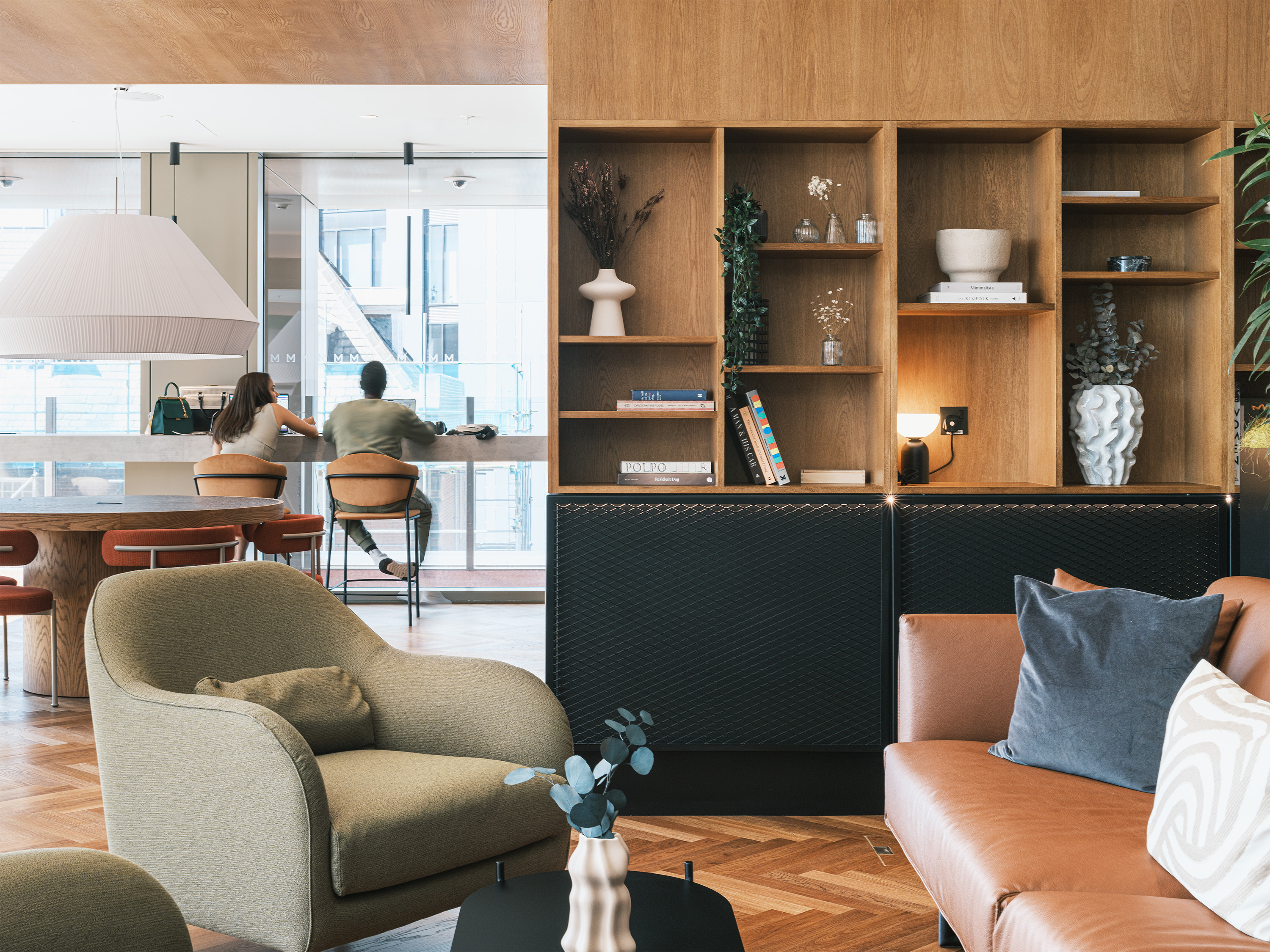 Finished in crisply detailed fair-faced concrete, The Mercian’s podium houses a triple-height residential reception, single and double-height retail units, residents’ amenities and an on-site management team alongside a floor of flexible workspaces for use by tenants and citizens.