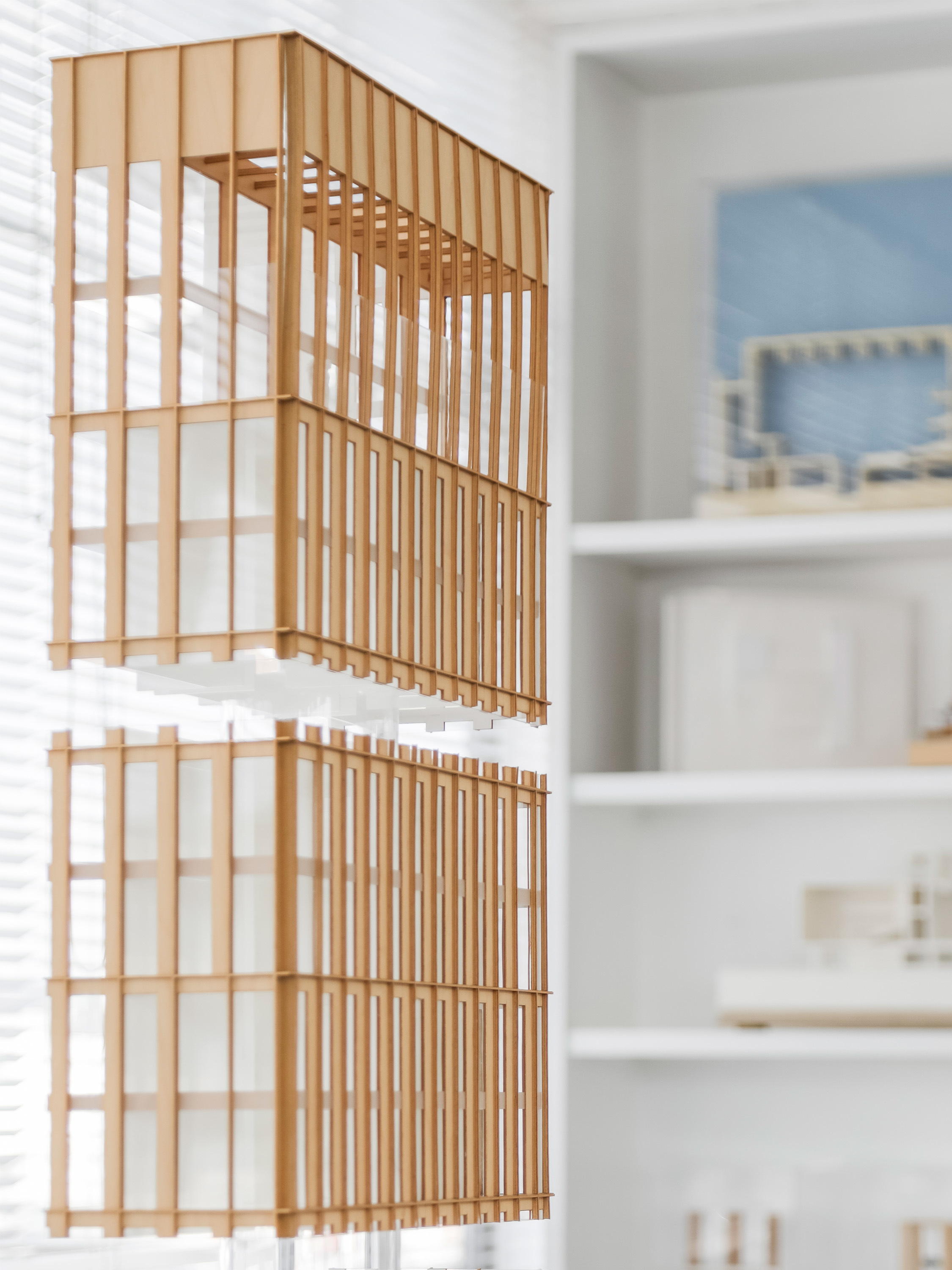 Responding to an urban grain of horizontal podiums and vertical slab blocks, the slender, subtly burnished tower rises from a monumental precast-clad plinth engaging Broad Street with three levels of dynamic frontage. A reference to Birmingham’s brass foundries and the Timmins Brassworks once located on the site, the facade’s defining rhythm of bronze fins was constructed as a prefabricated unitised system to maximise build quality and speed with minimal waste. Façade compositions are based on a ‘double order’ of architectural articulation—emphasising verticality and elegance and culminating in a ‘crown’ of finely elongated proportions.