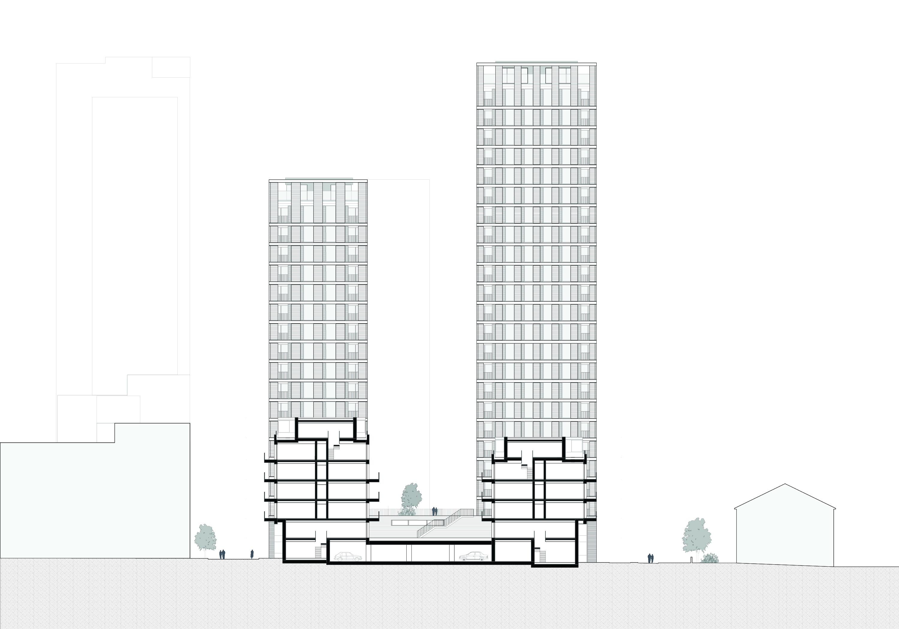 As part of the design team, our work focuses on the East Phase of the masterplan. Providing over 300 homes, our proposals comprise a pair of slender towers and a series of mansion blocks arranged around a shared garden space, set atop a stepped podium.